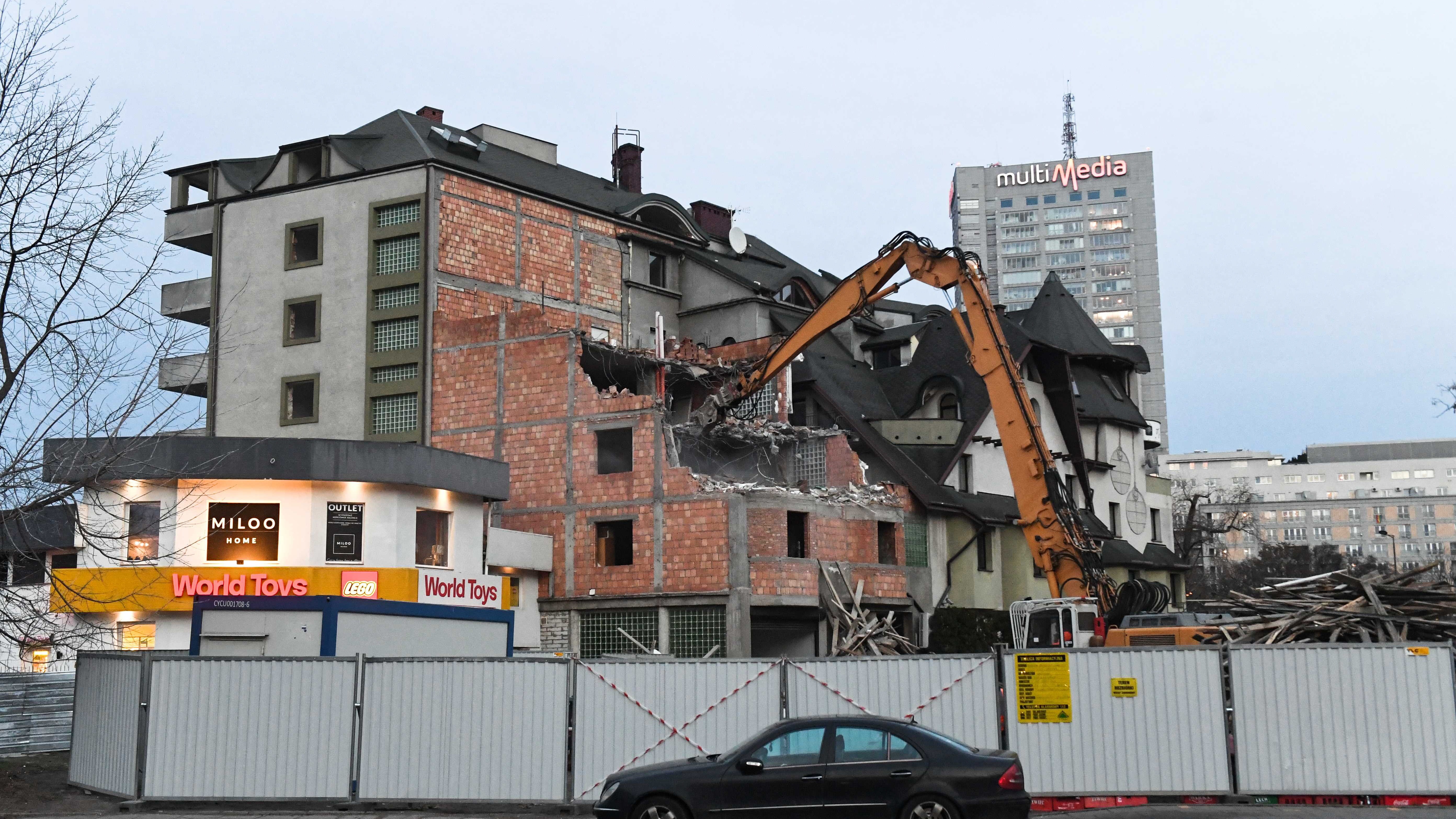 Budynek był rozbudowywany przez 25 lat niezgodnie z przepisami. Kuriozalny nielegalny obiekt zniknie. Czarny kot w warszawie do rozbiórki. W poniedziałek 16 grudnia w godzinach wieczornych samowola budowlana o którą toczył się wieloletni spór została nadszarpnięta pierwszymi.