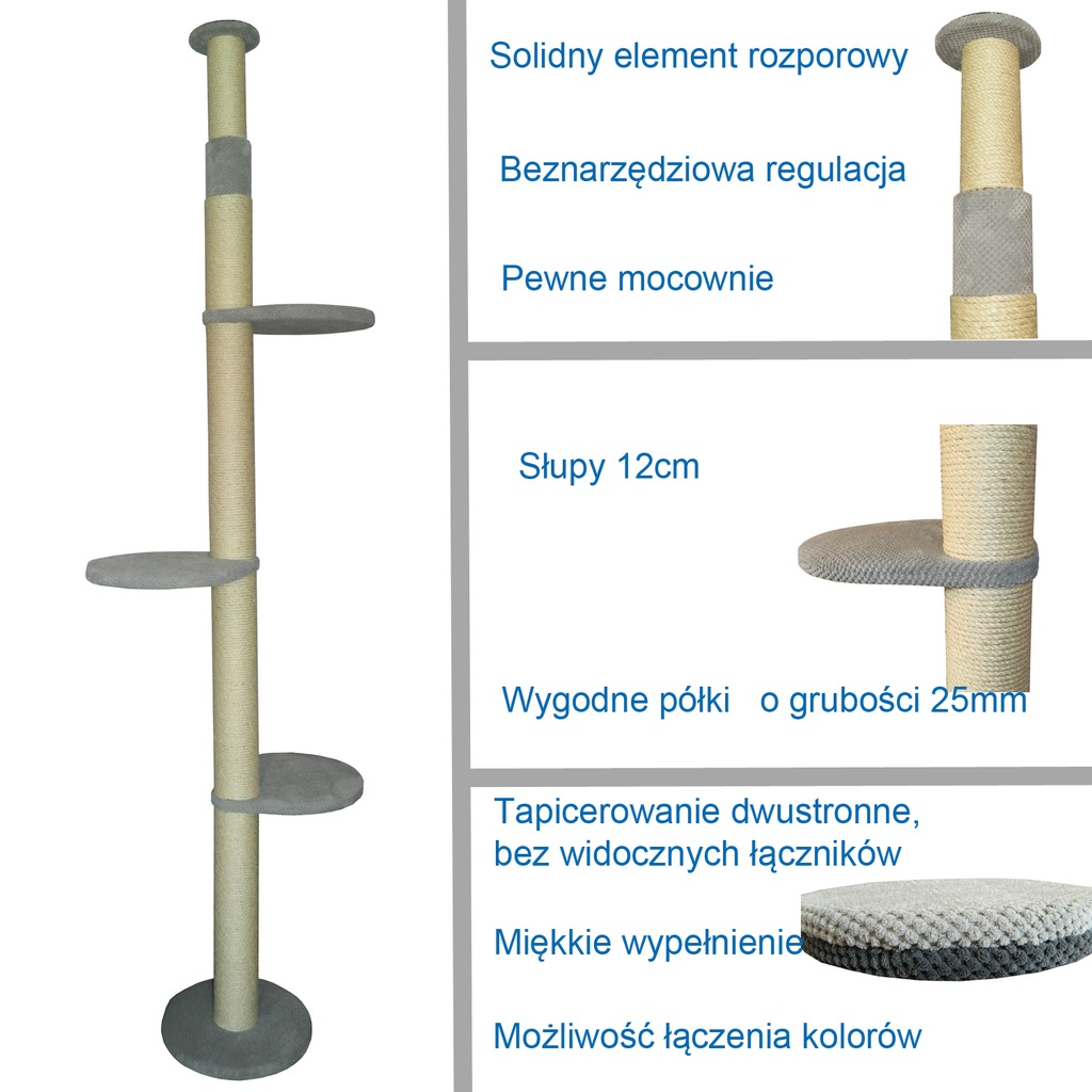 Zwierzęta akcesoria dla zwierząt 120 zł. Drapak dla kota smocowany do sufitu ma tę zaletę że można go indywidualnie dopasować do wysokości sufitu.